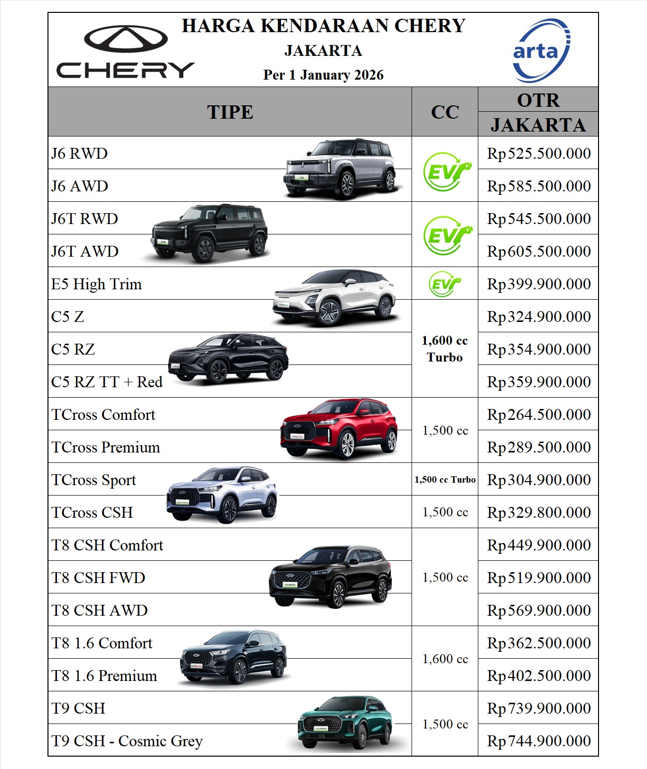 Dapatkan promo menarik dari Dealer Resmi Chery Arta PIK 2 Jakarta.